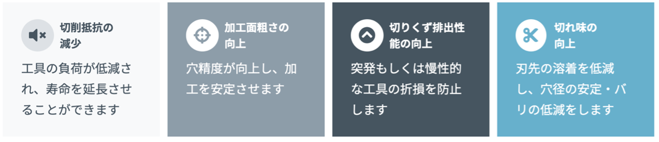 切削工具の切れ刃と溝を鏡面のように平滑にする表面処理を施すことによって、精密に研磨された工具以上の工具性能の向上が期待できます。