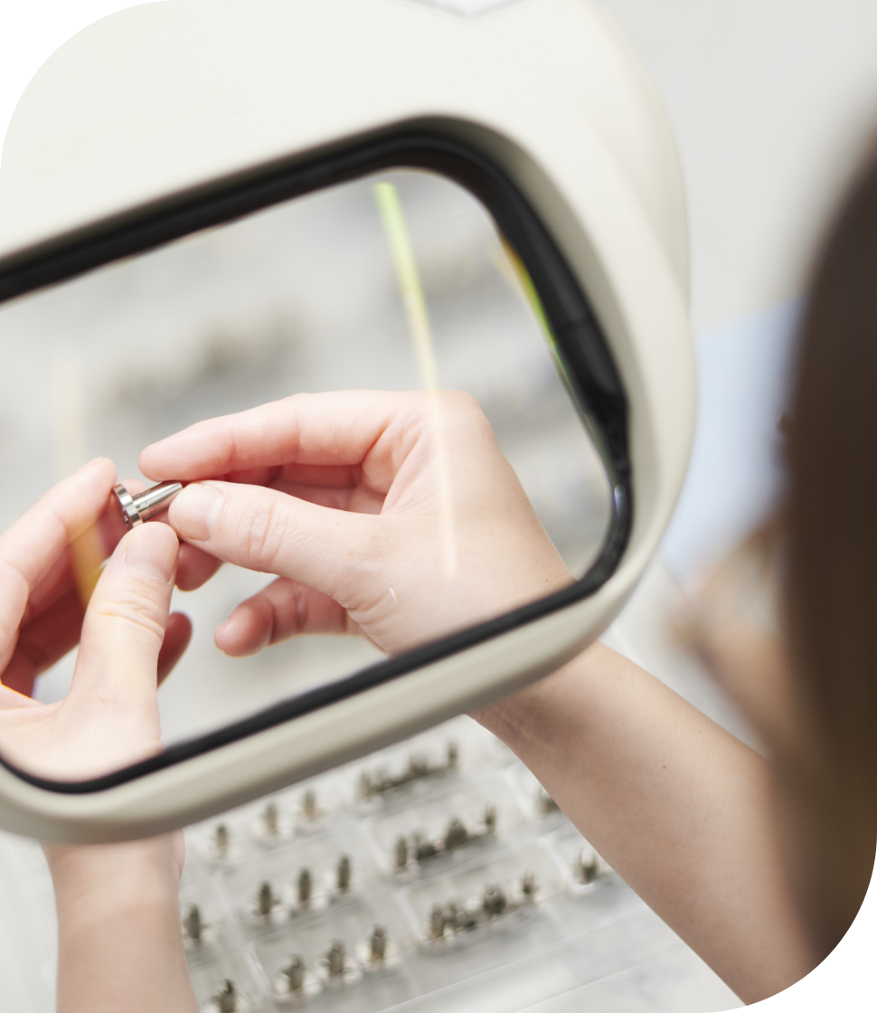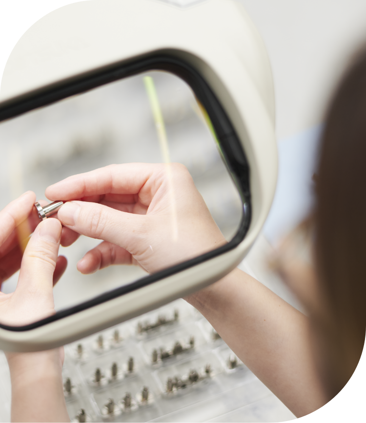 私の主な仕事は、できあがった製品を一つひとつ検品して小さな傷や不良箇所を見つけること。穴がずれていたり、変なところにバリ(加工の端に発生する不要な突起物)がついていたり、イレギュラーな不良品が出てくることも。その際はすぐ現場へ報告して、いち早く機械の不具合に対応しなければなりません。品質管理は会社の最後の砦となる重要なポジションなので、クレーム対象にならないよう常に緊張感を持って作業を行っています。