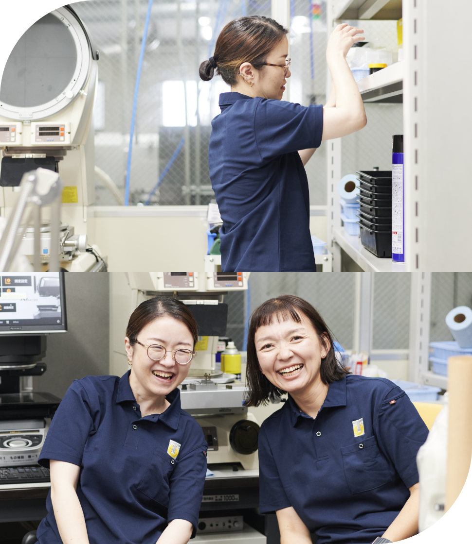 朝は15分早めに出社して、事務所の片付けやトイレ掃除、玄関先の清掃、植物の水やり、洗濯など業務以外の作業を終わらせるようにしています。時々来客があるので、お茶を出したり資料を出力したり専務のサポートに回ることもありますが、基本的に品質管理業務へ全神経を集中させています。残業はありませんし、その日の作業が終われば早めに帰れるので子育て中の私にとって本当にありがたい環境です。