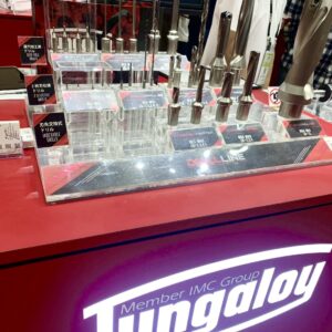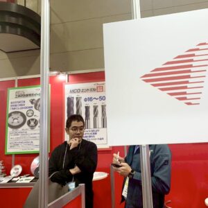 それにしても、今回は各社ともに自動旋盤向けの工具を展示されていて「熱いゾーンですね!」と専務も嬉しそうでした。確かに、例年に比べて自動旋盤用のツールが多い印象。この業界のトレンドなのかもしれません。